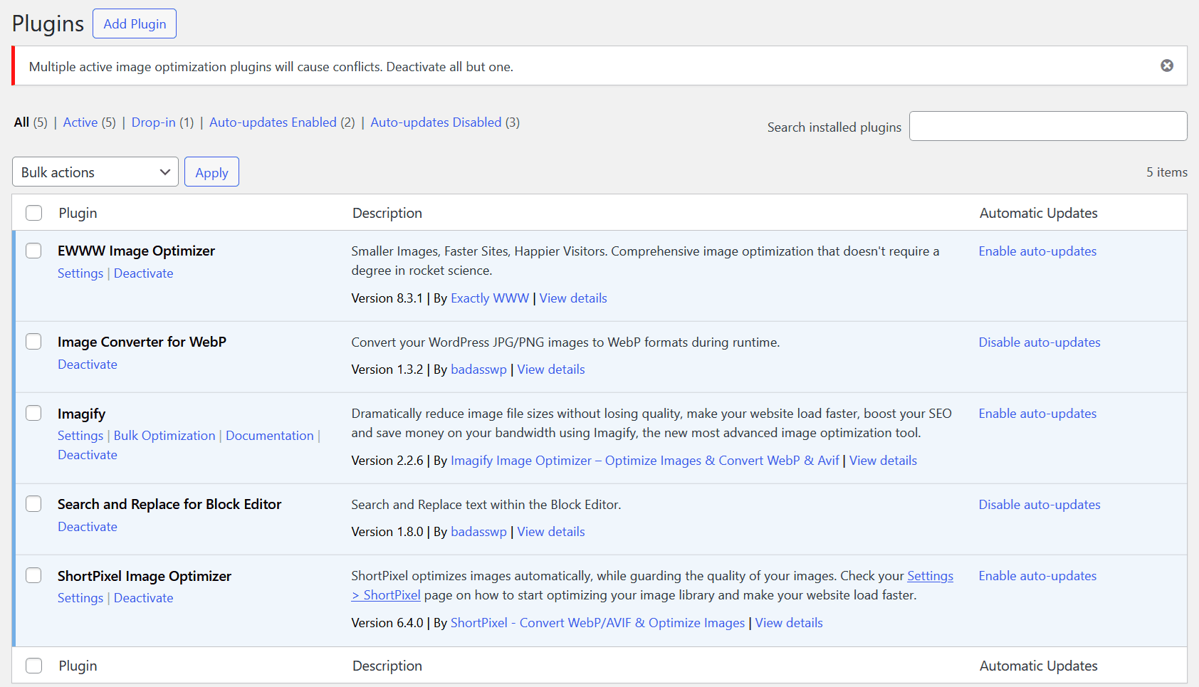 A surprisingly common mistake is running multiple image optimization plugins at once. You might think having ShortPixel, Smush, Imagify, and LiteSpeed’s image optimizer all active will give you better compression. In reality, they fight over the same files.