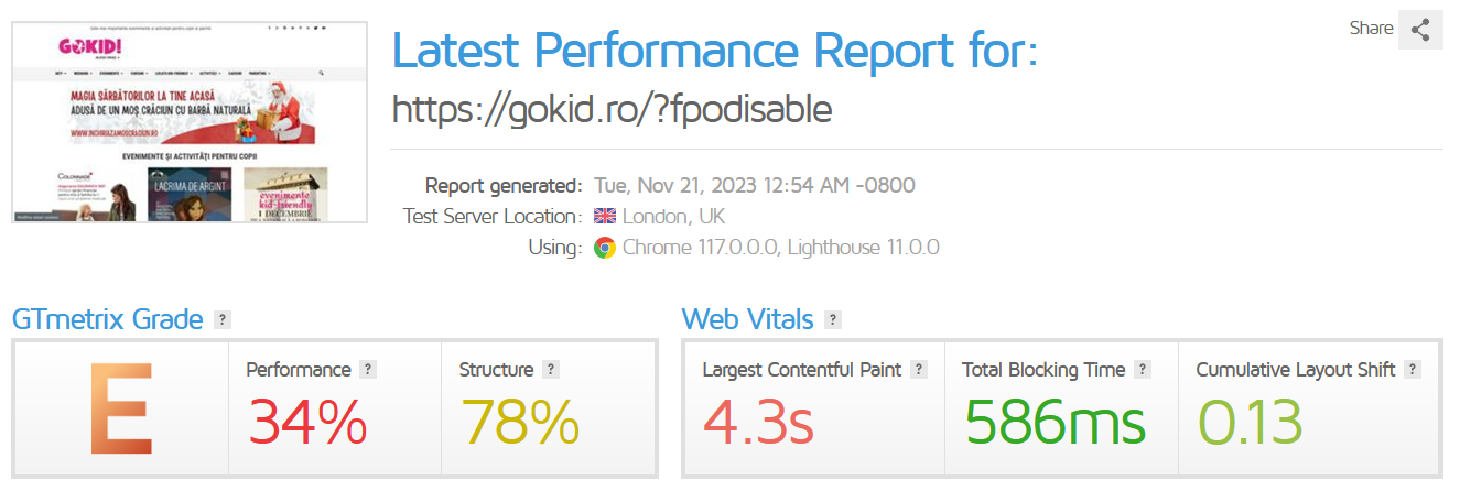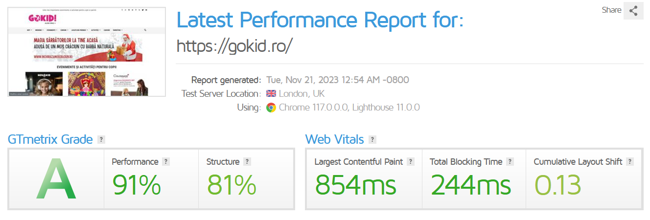 Here are the before/after FastPixel lab test results for a kid-centric portal via GTmetrix: