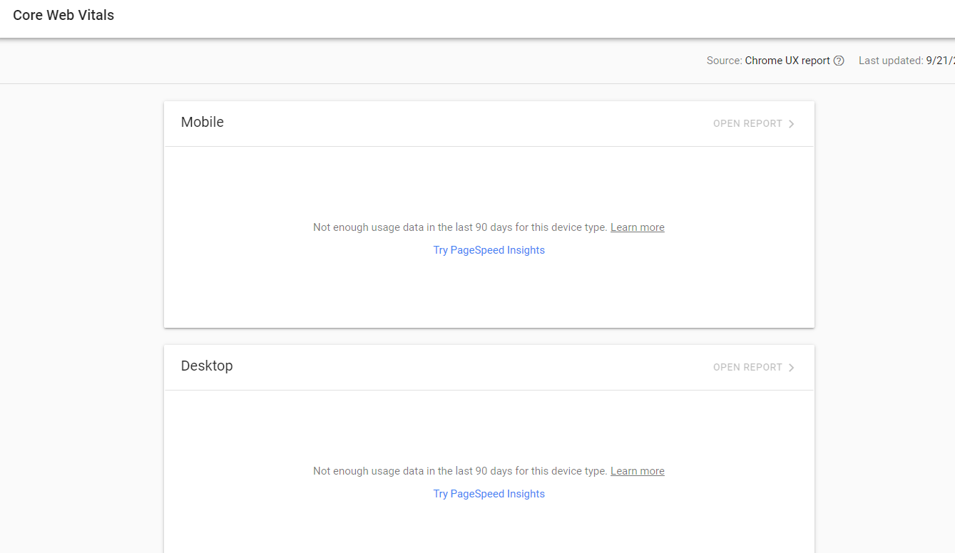 When these conditions aren’t met, Google can’t collect enough data to provide insights in Core Web Vitals, hence the “not enough usage data” message.
