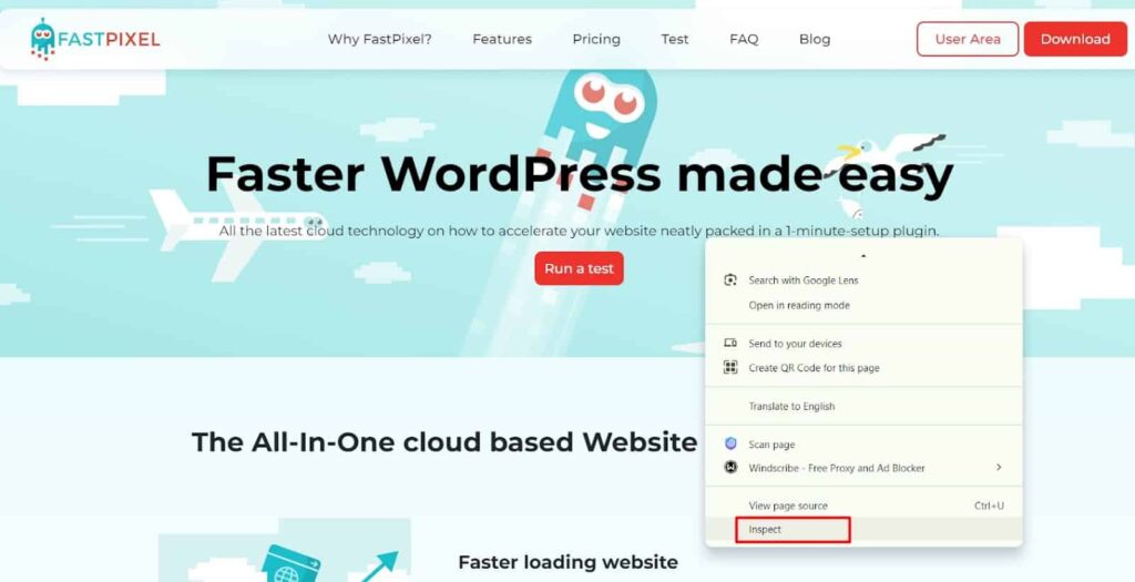 Step 1: Right-click anywhere on the page and select “Inspect” from the context menu.