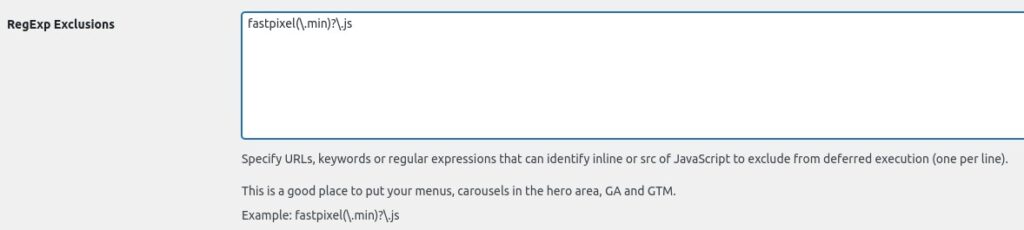 RegExp Exclusions – This option allows you to exclude JavaScript scripts/files from the optimization based on URLs, keywords or regular expressions that can identify inline or src of JavaScript.