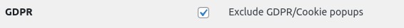 GDPR – This option allows the exclusion of GDPR and cookie popups from the optimization/caching process. It’s useful if you encounter any issues with them after they have been optimized.