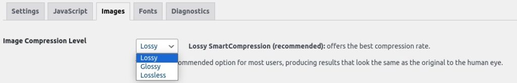 *Enabling/changing features in the JavaScript, Images, and Fonts tabs require a full cache purge for the changes to take effect.