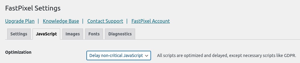 – Delay non-critical JavaScript – All scripts are optimized and delayed, except necessary scripts like GDPR. (The fastest and most recommended option)