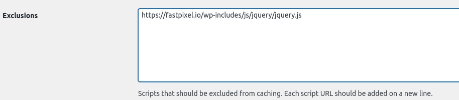 Exclusions – This option excludes JavaScript scripts/files from caching. It’s useful if you encounter issues with a certain JavaScript script/file being optimized or
